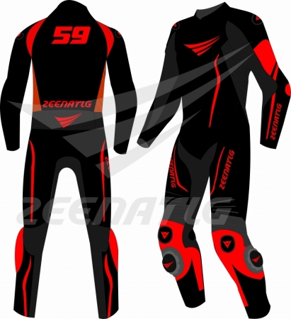 Top Grain Genuine Cowhide Mild leather 1.3-1.4mm Perforated (As per Design or on per customer’s desire) Sponsored Labels & Printings Stretch as per Design or on per Customer’s desire. Original YKK Zipper at Front, Cuffs & Calf External Shoulder, Elbow & Knee protections (As per Design or Customer’s desire) Dupont Kevlar or Scholar Keprotec Stretch Fabric at inner arms and Crotch and Back Shin Areas (As per design) Nylon Thread stitch